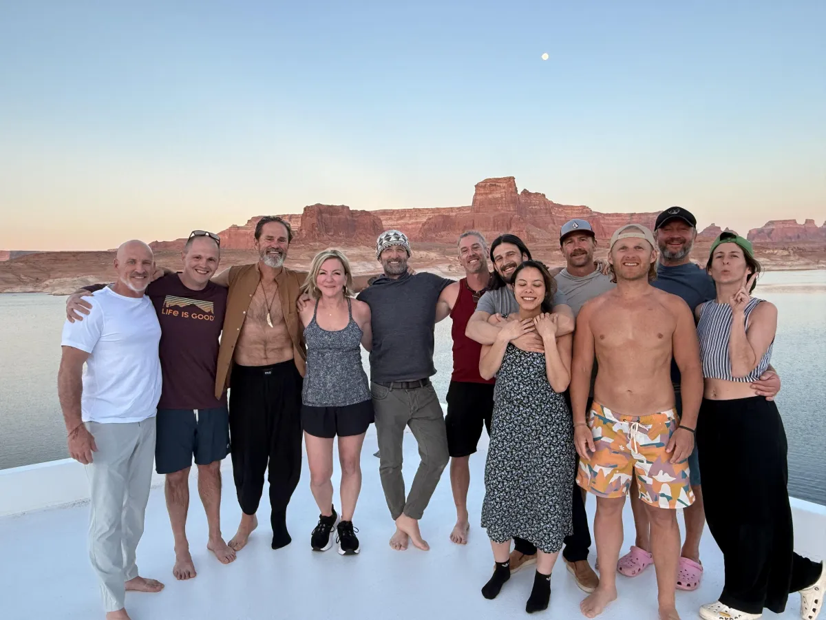 Aboard a luxury houseboat anchored on Lake Powell, we gather for three nights of water, fire, and conversation. Days move between wave runners, swims, and shoreline hikes; evenings into ceremony and reflection guided by Omani beneath a sky that humbles and expands.